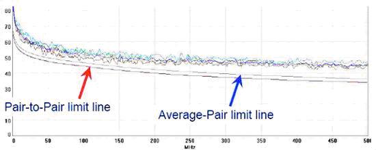 ◆ 4個線對的平均PS ANEXT必須通過標(biāo)準(zhǔn)規(guī)定的平均線對值;