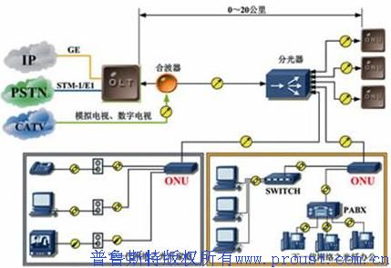 CATV傳送:可采用單獨光纖傳輸CATV信號,也可采用原有光纖1550波長傳輸。因為采用了單獨的傳輸介質或單獨的波長傳輸,CATV業(yè)務具有良好的質量保證。
