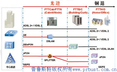 現在有不少的小區(qū)和園區(qū)利用FTTH的方案將視頻、語音和數據三網合一,并在社區(qū)內提供多種信息化增值服務和信息交互平臺。電信運營商也在開啟“光進銅退”實施方案。