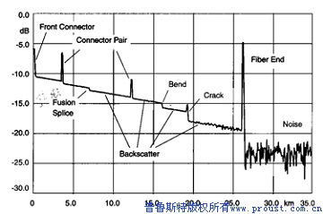 Fusion Splice :熔接點,光纖的熔接點缺陷容易造成軌跡圖中散射曲線的突然跌落。