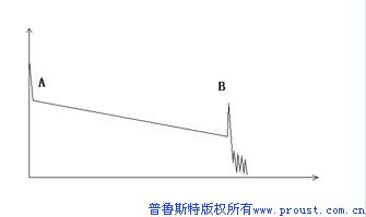 一般為正常曲線圖, A 為盲區(qū), B 為測試末端反射峰。測試曲線為傾斜的,隨著距離的曾長,總損耗會越來越大。用總損耗( dB )除以總距離( Km )就是該段纖芯的平均損耗( dB/Km )。